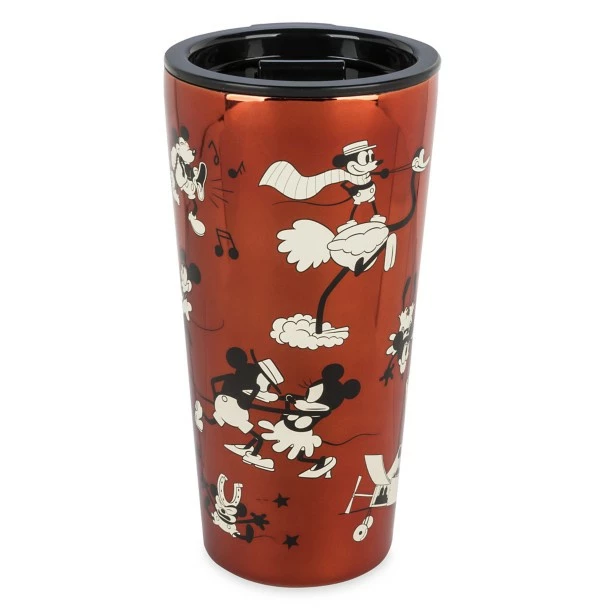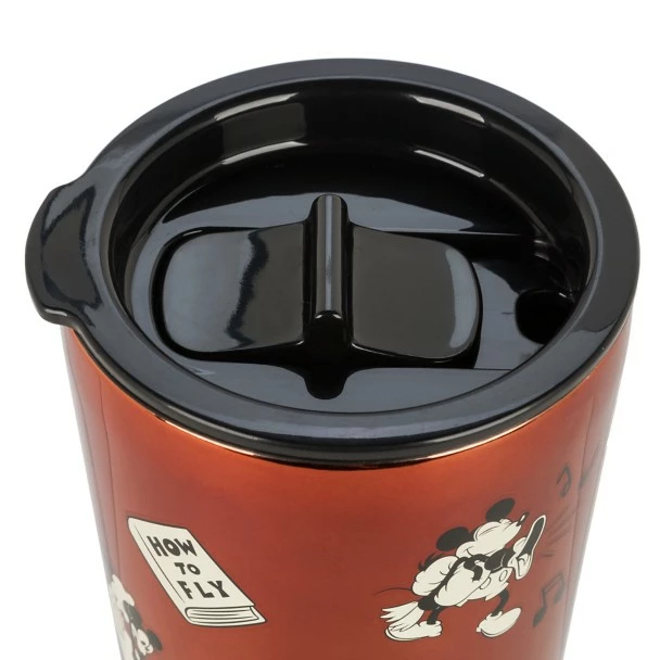 Keep your drink cool with Mickey and Minnie Mouse. This stainless steel drink carrier features all over screen print of Mickey and Minnie in classic cartoon form and comes with a secure lid for safe travels!