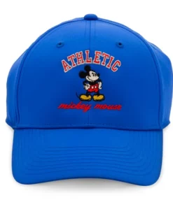 Mickey Mouse shows off his athletic side in an embroidered design on the front of this stylish baseball cap by Nike.