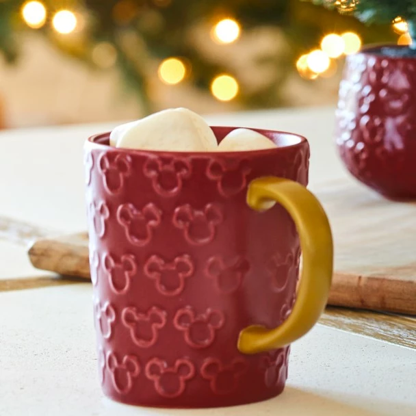Deck the halls while enjoying a round of holiday cheer from this merry Mickey icon mug with metallic sheen and golden handle.