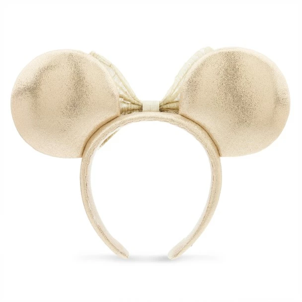 Like Minnie Mouse, you’ll be a shimmering, timeless classic in this ear headband with padded pearlescent lamé ears and coordinating headband, all topped with an oatmeal shear fabric bow.