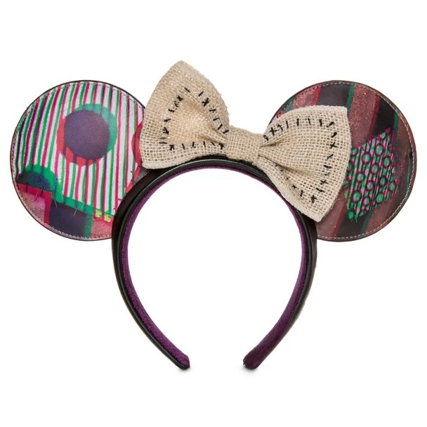 Sally, Jack Skellington’s rag doll sweetheart in Tim Burton’s The Nightmare Before Christmas, provides the inspiration for this ear headband. The simulated leather design is an abstracted take on her pieced look, while her name is embroidered on the outside of the headband.