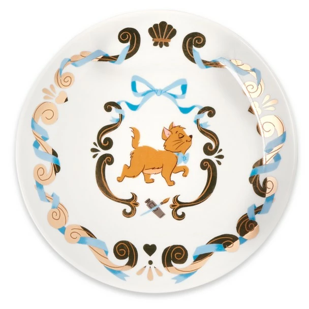 This set of four plates will make dinner time purrr-fect This porcelain plate set features designs of lovable characters from Disney’s The Aristocats, including Marie, Berlioz, Toulouse, and Roquefort.