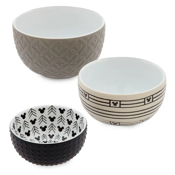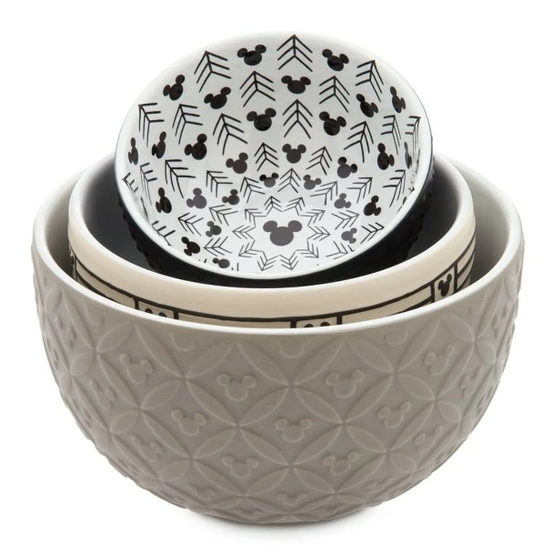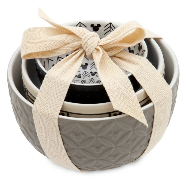 Add an elegant accent to your kitchen decor with these ceramic nested bowls in muted tones from our Disney Homestead Collection. Each bowl features a different pattern and color, and all are perfect for cooking prep or snacks!